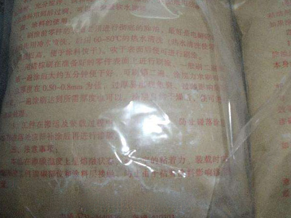 (2)將涂料攪拌均勻后涂覆于防滲部位(視零件情況可選擇刷涂、浸涂或噴涂方式)。一般涂覆單層(涂層厚度約0.3-0.4毫米,應不露零件底色)可滿足滲層深度至2.0毫米的防滲要求。若要求工件滲層深度>2.0mm,應待第一道涂層干后再涂第二層,即可獲得深層的防滲要求。涂覆用量:1.5-1.8㎡/㎏。
